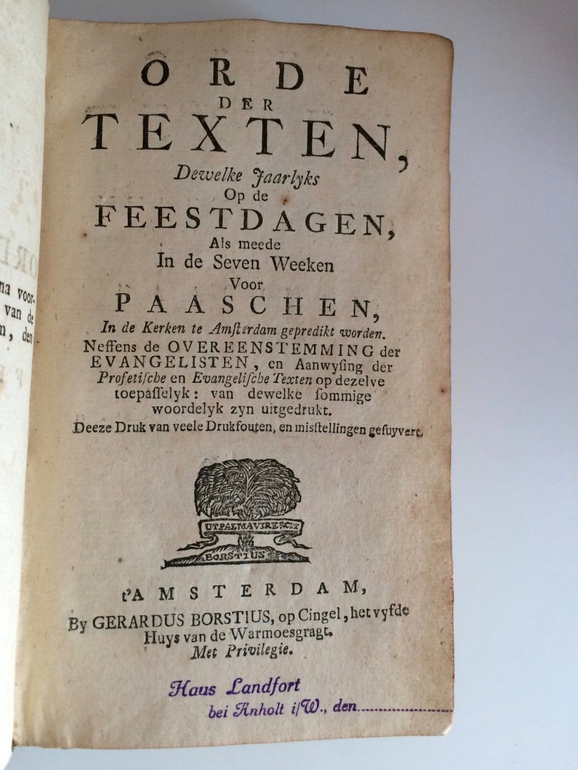 | Titel: | Orde der Texten, dewelke jaarlijks op de feestdagen, als mede in de seven weeken voor Paaschen, in de kerken te Amsterdam gepredikt worden |