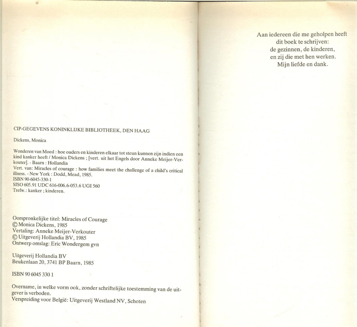 Miracles of Courag Oorspronkelijke titel Omslagontwerp Eric Wondergem gvn Voorwoord van Prof. Dr. P.A. Voute bijzonder hoogleraar kinderoncologie aan de Universiteit van Amsterdam en werkzaam bij het Emma kinderziekenhuis en het Anton van Leeuwenhoek ziekenhuis te Amsterdam |