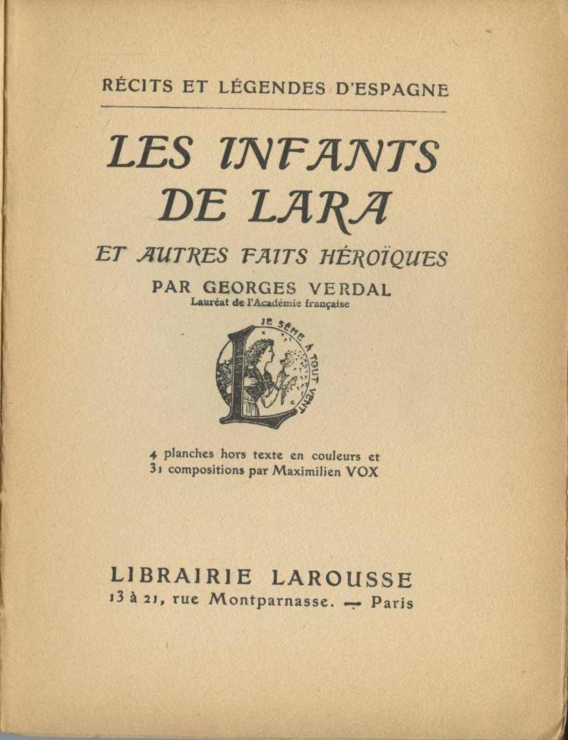 ![Verdal, Georges - Les Infants de Lara et autres faits héroïques. [Récits et légendes d'Espagne] Verdal, Georges - Les Infants de Lara et autres faits héroïques. [Récits et légendes d'Espagne]](https://images.boekwinkeltjes.nl/medium/xM9WIfDfNIxlO2W3Fdka.jpg)