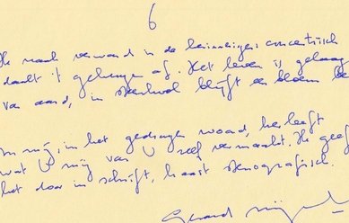 Oosterhesselen, Agri Montis Pers, 1986. 24,7 x 21,3 cm. Ingenaaid met omslag. (4) p. Vervaardigd op Banzay-papier in een oplage van 20 genummerde exemplaren (dit is nummer 2 van de oplage). 'Moeder, uw stille overtocht, zoals u ons ontkwam/ die ochtend voor de zuster druk van hart en bloed opnam'. 24 zesregelige gedichten. Aan elk exemplaar is een handschrift van de dichter toegevoegd. Dichters in Drente 2. AMP 22.