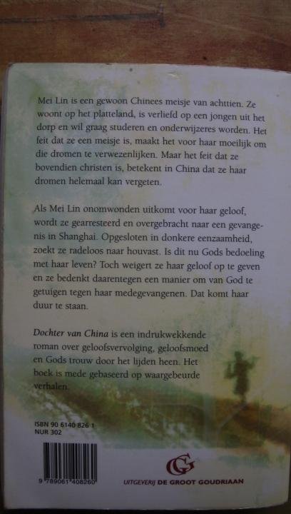 Mei Lin is een gewoon Chinees meisje van achttien. Ze woont op het platteland, is verliefd op een jongen uit het dorp en wil graag studeren en onderwijzeres worden. Het feit dat ze een meisje is, maakt het voor haar moeilijk om die dromen te verwezenlijken. Maar het feit dat ze bovendien christen is, betekent in China dat ze haar dromen helemaal kan vergeten. Als Mei Lin onomwonden uitkomt voor haar geloof, wordt ze gearresteerd en overgebracht naar een gevangenis in Shanghai. Opgesloten in donkere eenzaamheid, zoekt ze radeloos naar houvast. Is dit nu Gods bedoeling met haar leven? Toch weigert ze haar geloof op te geven en ze bedenkt daarentegen een manier om van God te getuigen tegen haar medegevangenen. Dat komt haar duur te staan. Dochter van China is een indrukwekkende roman over geloofsvervolging, geloofsmoed en Gods trouw door het lijden heen. Het boek is mede gebaseerd op waargebeurde verhalen. |