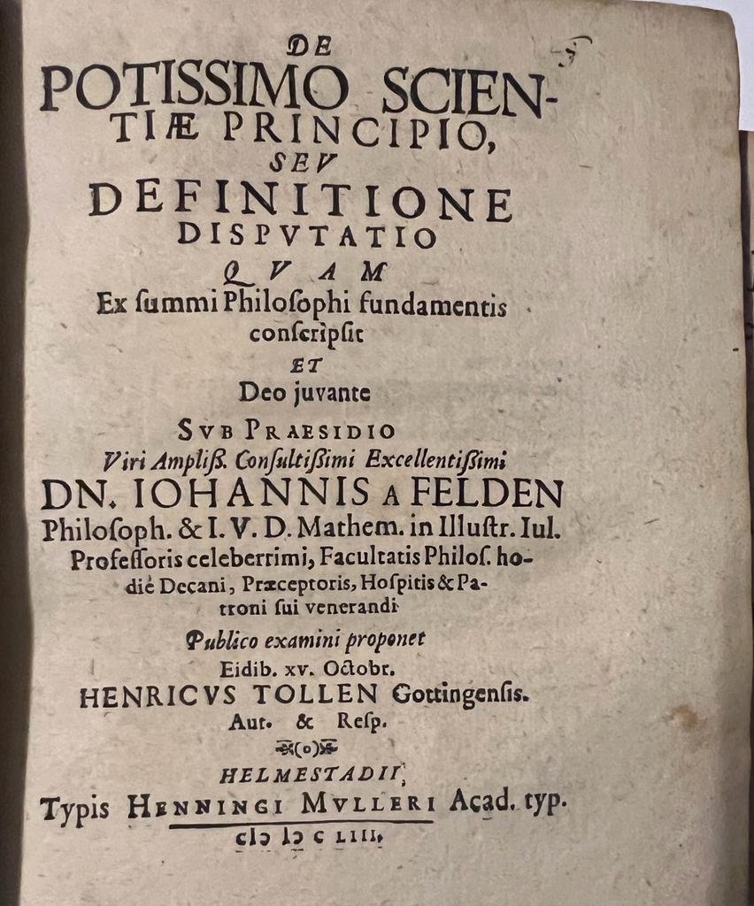 ![Tollen, Henricus uit Göttingen; Praeses: Felden, Johannes a - Dissertation 1653 I De potissimo scientiae principio seu definitione disputatio [...] Helmstedt Henning Müller 1653. Tollen, Henricus uit Göttingen; Praeses: Felden, Johannes a - Dissertation 1653 I De potissimo scientiae principio seu definitione disputatio [...] Helmstedt Henning Müller 1653.](https://images.boekwinkeltjes.nl/medium/whsfoRCKNQimiXgnVNYk.jpeg)