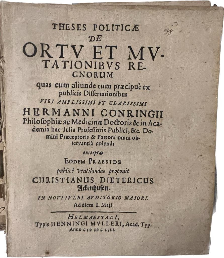 ![Ackenhusen, Christianus Dietericus; Praeses: Conring, Hermann - Dissertation 1658 I Theses politicae de ortu et mutationibus regnorum [...] Helmstedt Henning Müller 1658. Ackenhusen, Christianus Dietericus; Praeses: Conring, Hermann - Dissertation 1658 I Theses politicae de ortu et mutationibus regnorum [...] Helmstedt Henning Müller 1658.](https://images.boekwinkeltjes.nl/medium/adJraiFpXQfSarZzpc1P.jpeg)