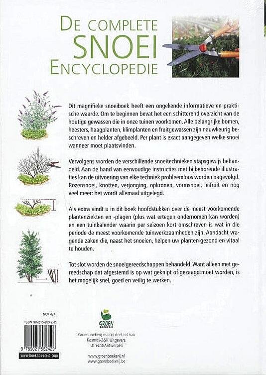 | Titel: | De Complete Snoei Encyclopedie . ( Voor veel planten is regelmatige snoei noodzakelijk, voor andere is incidenteel corrigerende snoei gewenst. Maar verantwoord snoeien kan pas als je precies weet welke planten je in de tuin hebt staan en wat voor - |