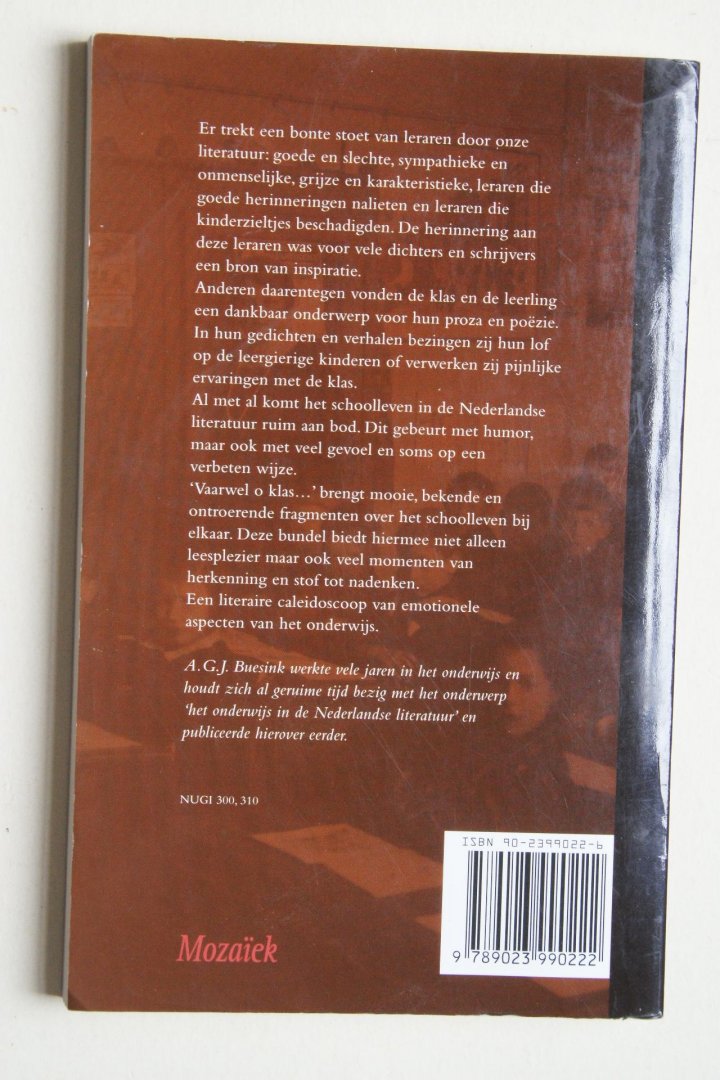| Titel: | Buesink: Het schoolleven in de Nederlandse literatuur Vaarwel O Klas ... gedichten en prozafragmenten |