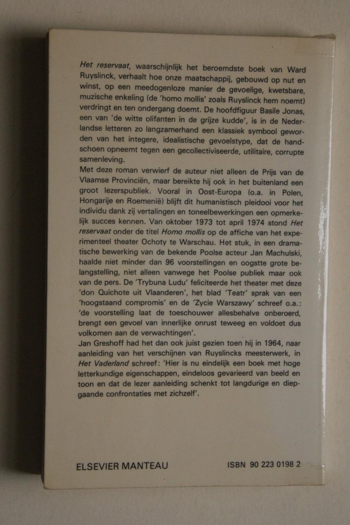 Ruyslinck, Ward - bellettrie: HET RESERVAAT