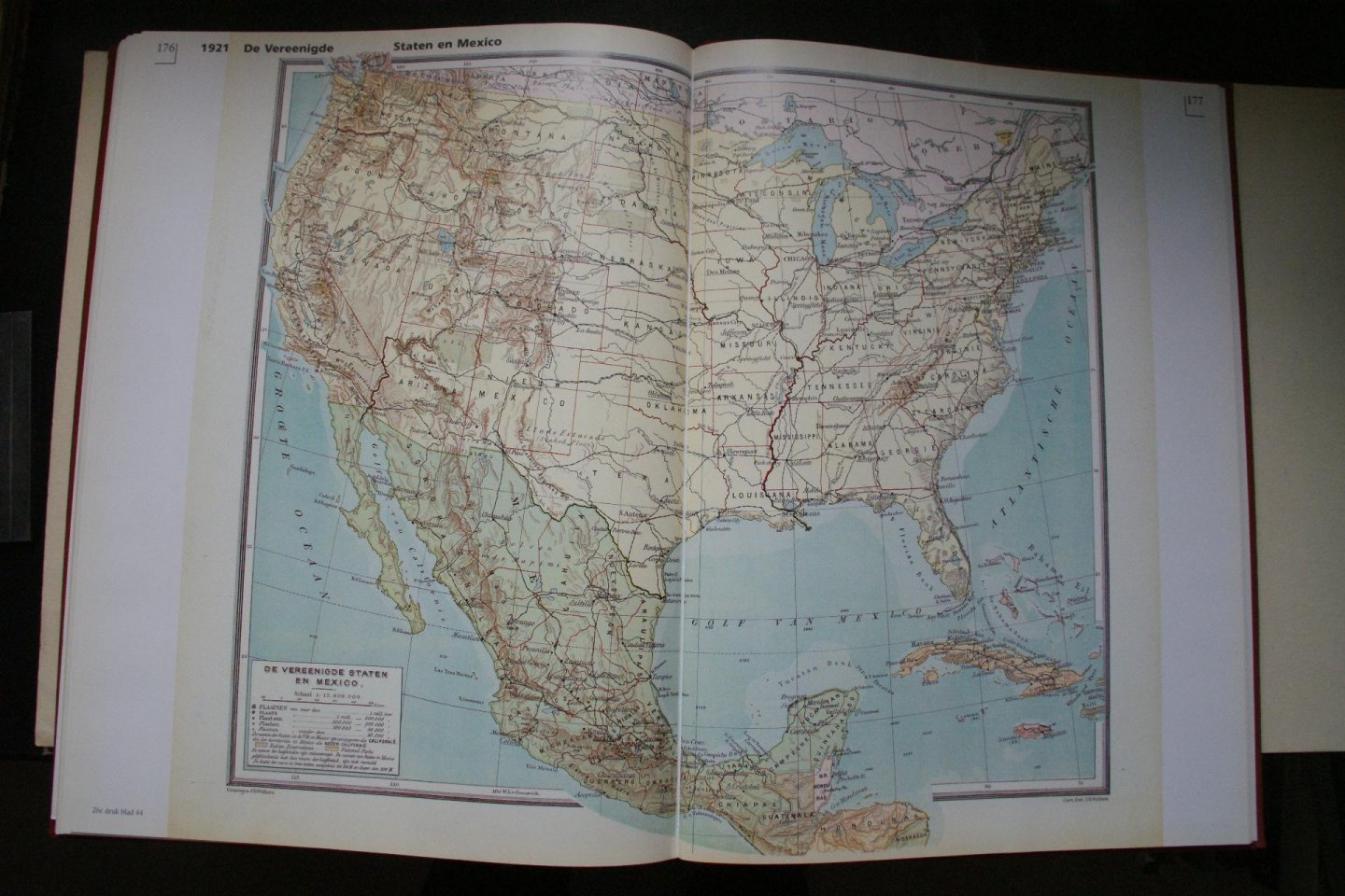 | Uitgever: | Wolters Noordhoff 37,5x27,5 cm. Geb., linnen. Vi, 217 pp., ingedeeld in 13 kaartsecties van verschillende gebieden/werelddelen, met totaal 97 kaarten in kleur, waarvan enkele uitklapbaar, herdrukt over twee pagina's |