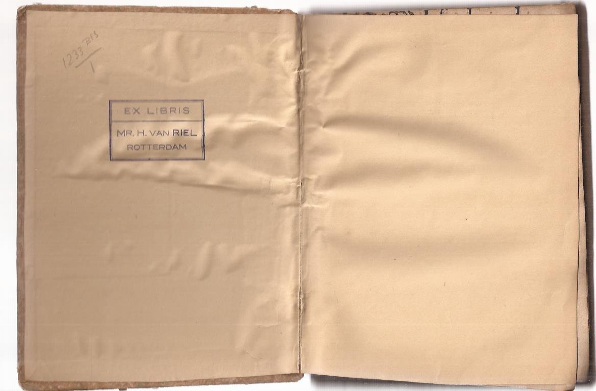 Schaars, ex bibliotheek mr. H. (Harm) van Riel, Rotterdam (stempel op schutblad)
