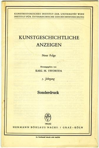 | Bijzonderheden: | Offprint of the Kuntgeschichtliche Anzeigen of the Univerity of Vienna. First cover has a stain and is a bit damaged, further good. Postage International email |