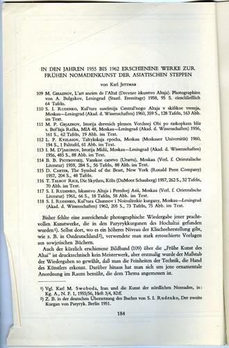 | Titel: | In den Jahren 1955 bis 1962 erchienene Werken zur fruhen Nomadenkunst der Asiatischen Steppen |
