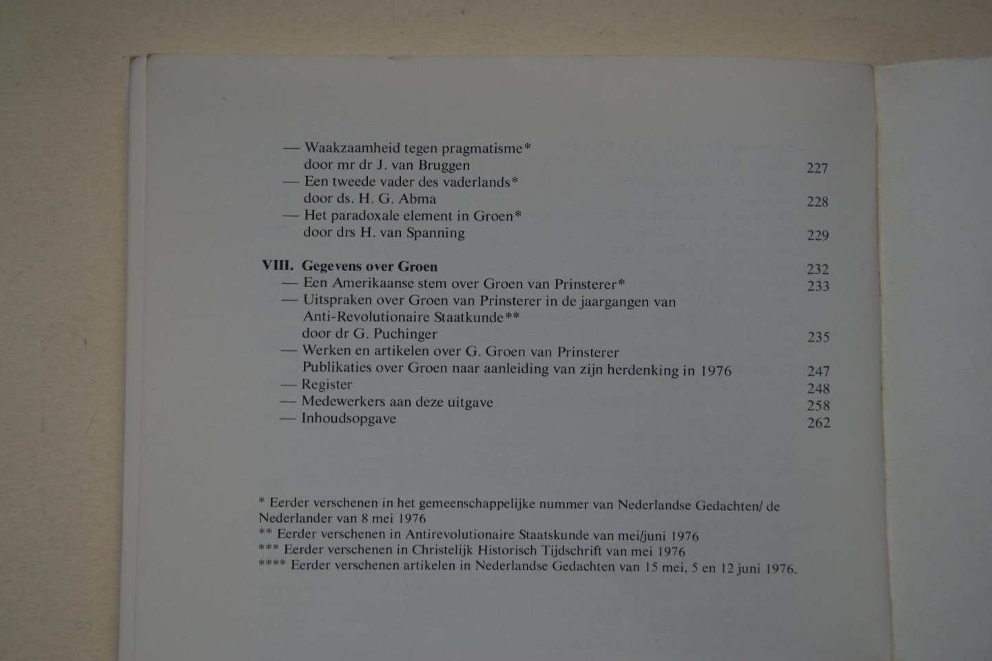 | Titel: | 3 boeken: EEN STAATSMAN TER NAVOLGING GROEN van PRINSTERER HERDACHT & EEN ZIEL VAN VUUR opstellen & GROEN VAN PRINSTER staatsman en profeet 1876 - 1976 |