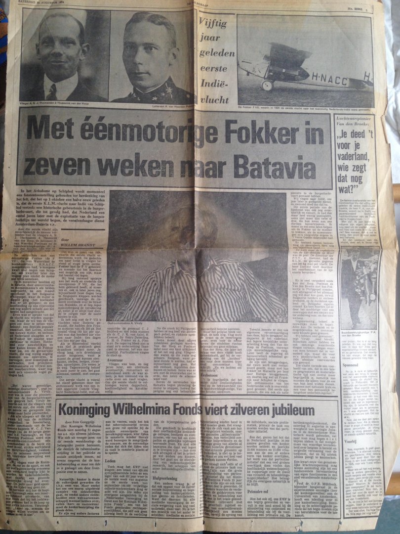 Artikel Met éénmotorige Fokker in zeven weken naar Batavia, 50 jaar ge