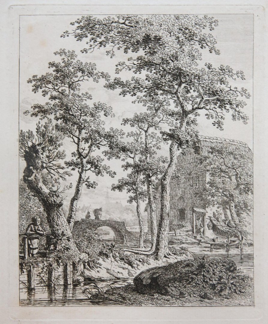 | Titel: | Ets/Etching: Farm by a stream of water (Boerderij bij stromend water). |
