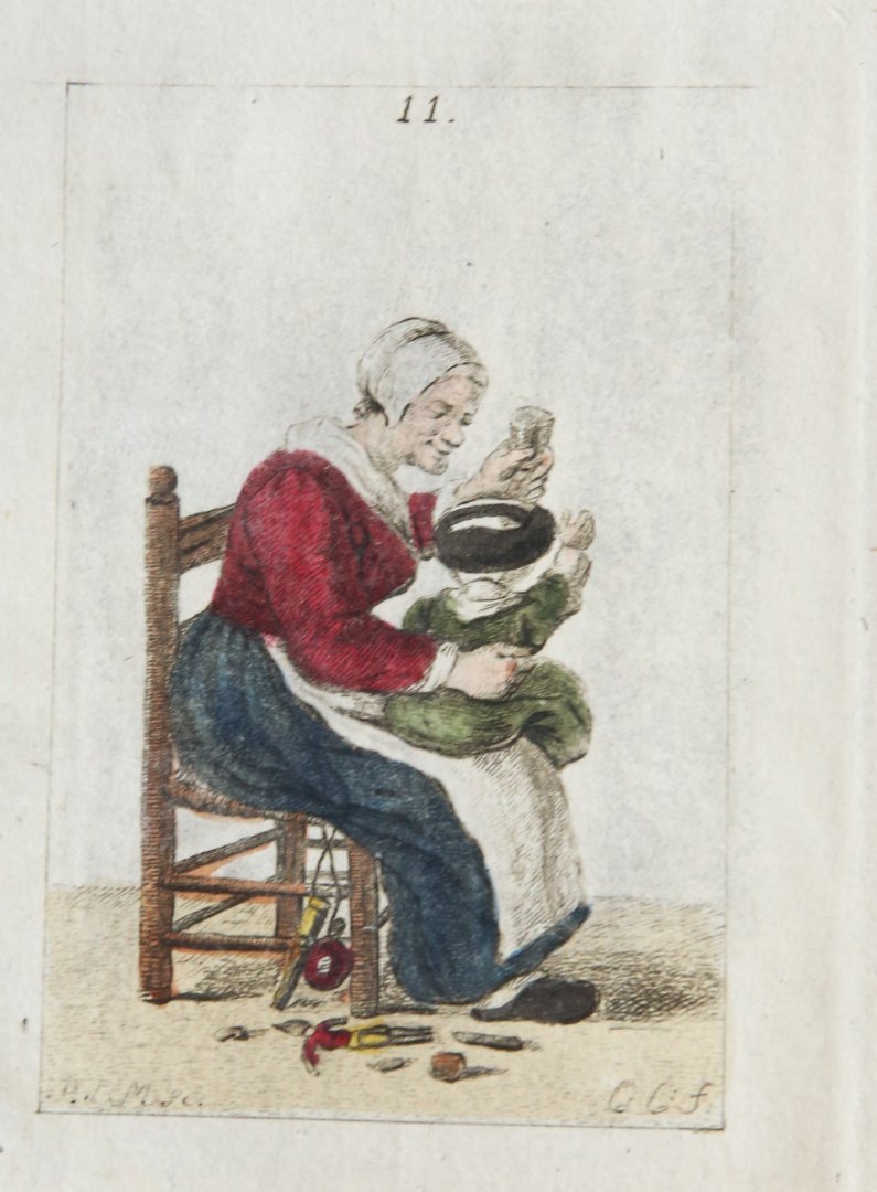 | Titel: | Handgekleurde ets/Handcolored etching: Mother and child [plate 11 from "Zinspelende gedigjes, op de geestige printjes ge-etst door Pieter de Mare...", 1793] (moeder met kind). |