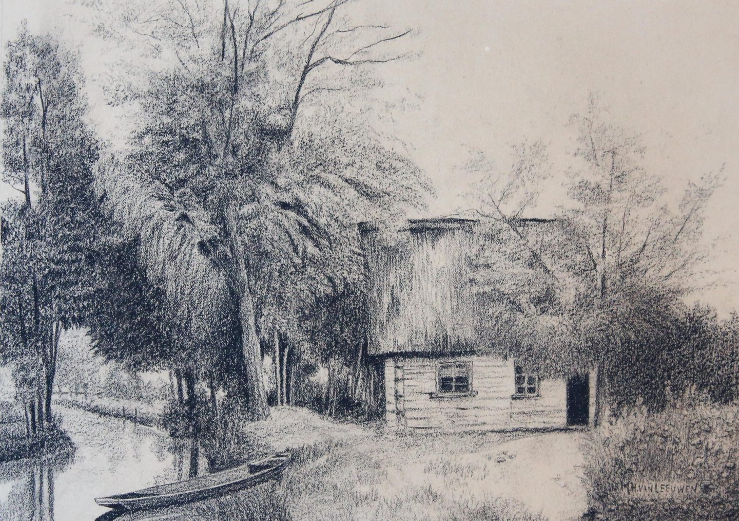 | Bijzonderheden: | An impression of a work by M.H. van Leeuwen. A small cottage near a river. The artist signed on the lower side of the work. M101. |