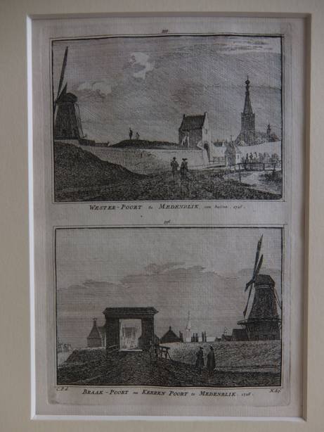 | Titel: | Wester-Poort te Medenblik, van buiten, 1726/ Braak-Poort nu Keeren Poort te Medenblik, 1726. |