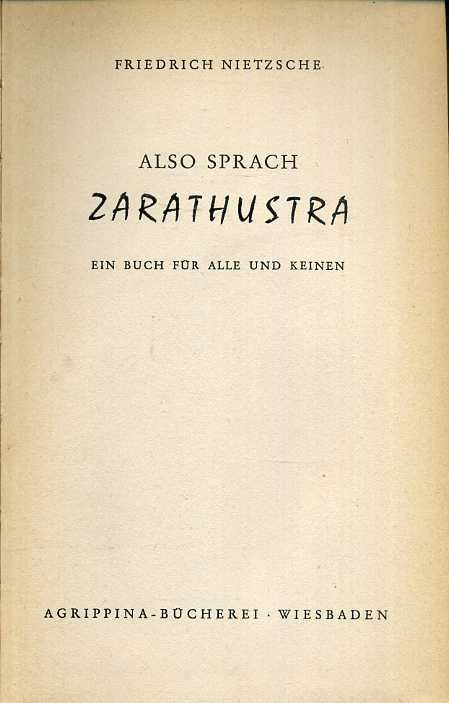 Nietzsche, Friedrich - Also sprach Zarathustra. Ein Buch für Alle und Keinen. Nietzsche, Friedrich - Also sprach Zarathustra. Ein Buch für Alle und Keinen.