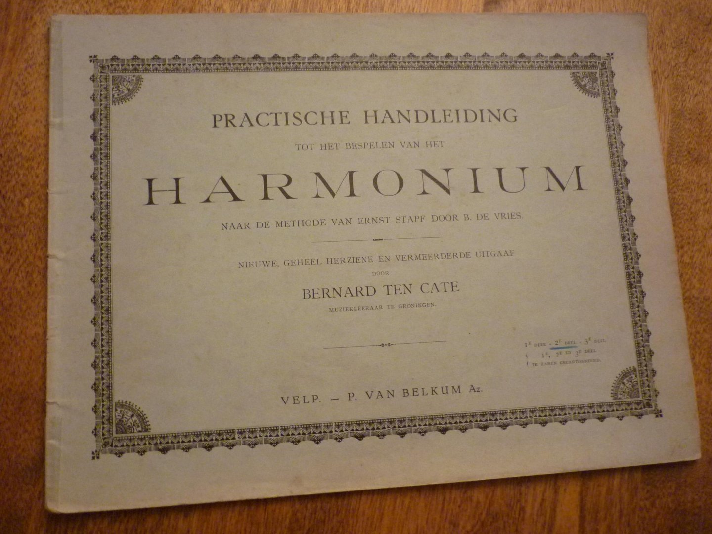 Praktische handleiding tot het bespelen van het harmonium naar de methode van Ernst Stapf door B. de Vries. Nieuwe, geheel herziene en vermeerderde uitgaaf door Bernard ten Cate. - eerste deel. - 19e druk |