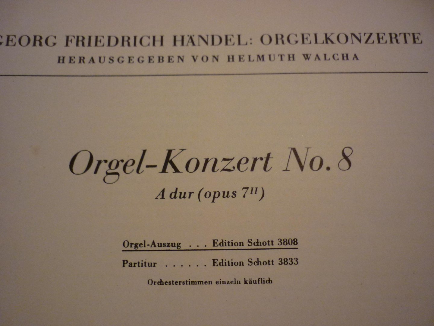 Handel; G.F. - Orgelkonzerte No. 8 A dur (Opus 7II) - Helmuth W