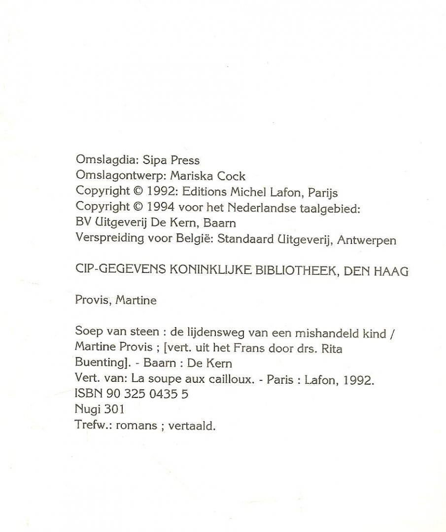 | Schrijver: | Provis, Martine. Vertaald uit het Frans Door Drs Rita Bueting Omslagdia Sipa Press |