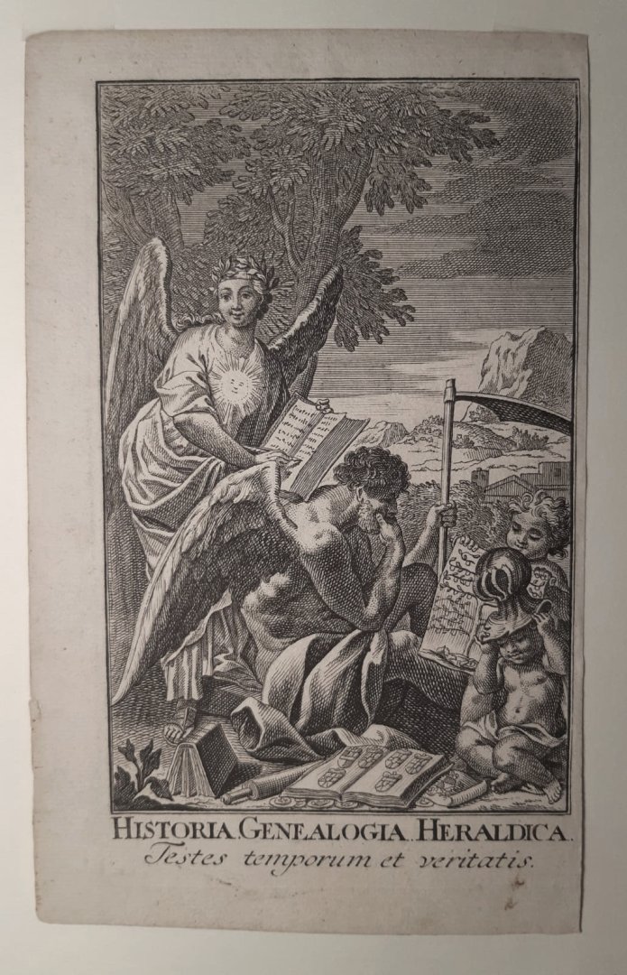 | Titel: | [Antique title page, 1737] Historia. Genealogia. Heraldica. Testes temporum et veritatis, published 1737 [?], 1 p. |