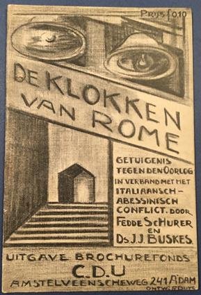 | Bijzonderheden: | Omslagtitel: De klokken van Rome. Getuigenis tegen den oorlog in verband met het Italiaansch-Abessinisch conflict. Reden uitgesproken op 30 October 1935 in het gebouw der Vrije Gemeente te Amsterdam. Omslagontwerp: R. Duys. |