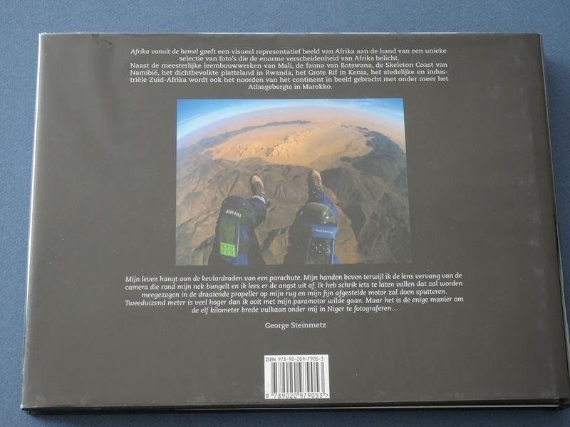 Duizelingwekkend fotoboek van George Steinmetz. De schoonheid van Afrika indrukwekkend in beeld gebracht. Vanuit zijn paramotor legde de National Geographic-fotograaf de landschappelijke schoonheid van Afrika vast in al haar verscheidenheid: de meesterlijke leembouwwerken van Mali, de fauna van Botswana, de Skeleton Coast van Namibië, het dichtbevolkte platteland in Rwanda, het Grote Rif in Kenia, het stedelijke en industriële Zuid-Afrika, het Noord-Afrikaanse Atlasgebergte in Marokko...