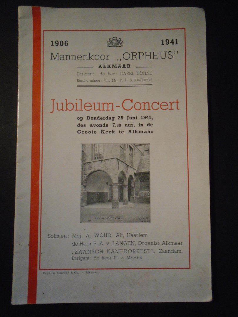 | Titel: | Mannenkoor "Orpheus ", Jubileum-Concert. 26 juni 1941. ( 1906-1941) Alkmaar |