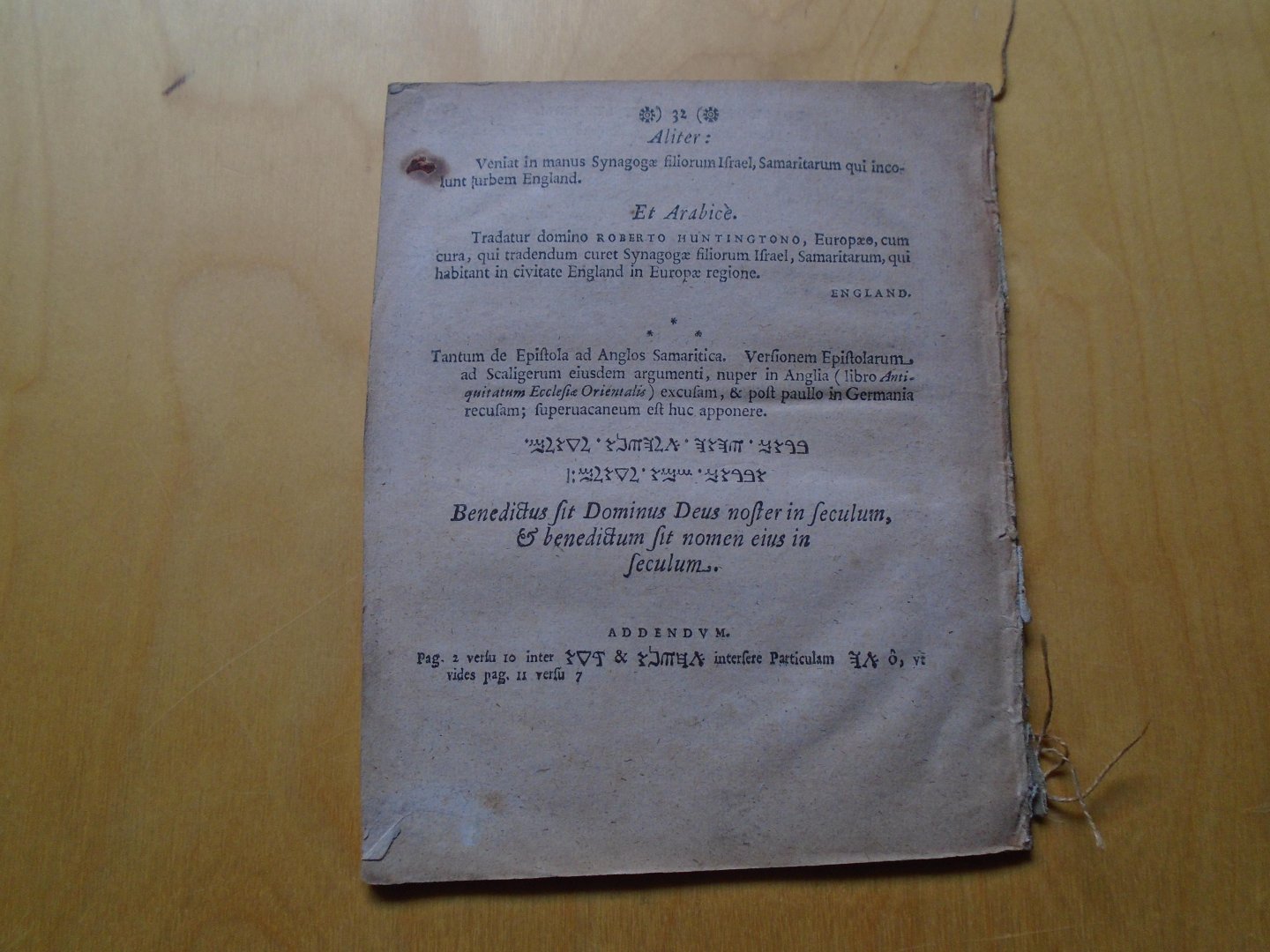 | Titel: | Epistolae Samaritanae Sichemitarum ad Jobum Ludolfum. Consiliarum cum ejusdem Latina versione et annotationibus. Accedit versio Latina persimilium literarum a Sichemitis, haud ita pridem ad Anglos datarum |