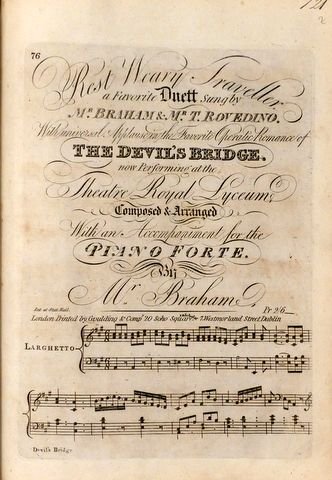 | Titel: | Rest weary traveller. A favorite duett... in the favorite operatic romance of The devil`s bridge. With an accompaniment of the piano forte |