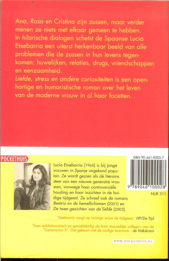 Omslagontwerp Studio Deunk te Amsterdam Gebruikers Sporen en Geel verkleuring Lucía Etxebarria schetst een uiterst herkenbaar beeld van alle problemen die drie zussen in hun levens tegenkomen: huwelijken, relaties, drugs, vriendschappen en eenzaamheid. |