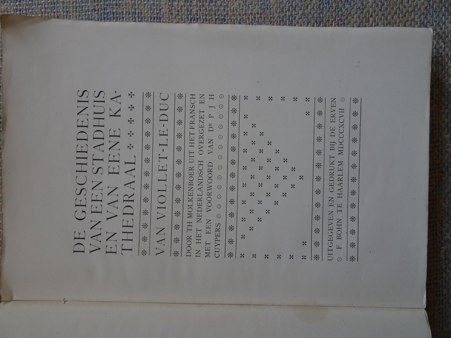 | Titel: | DE GESCHIEDENIS VAN EEN STADHUIS EN VAN EENE KATHEDRAAL Door Th. Molkenboer uit het Fransch in het Nederlandsch overgezet en met een voorwoord van Dr. P.J.H. Cuypers |