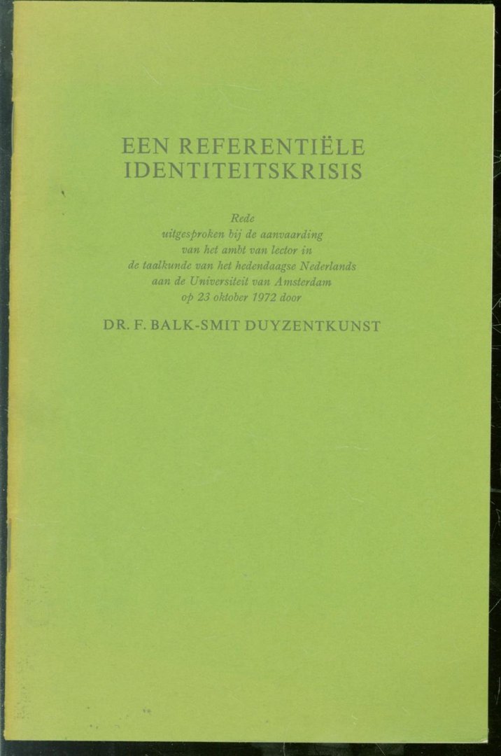 Balk-Smit Duyzentkunst, F. - Een referentiële identiteitskrisis