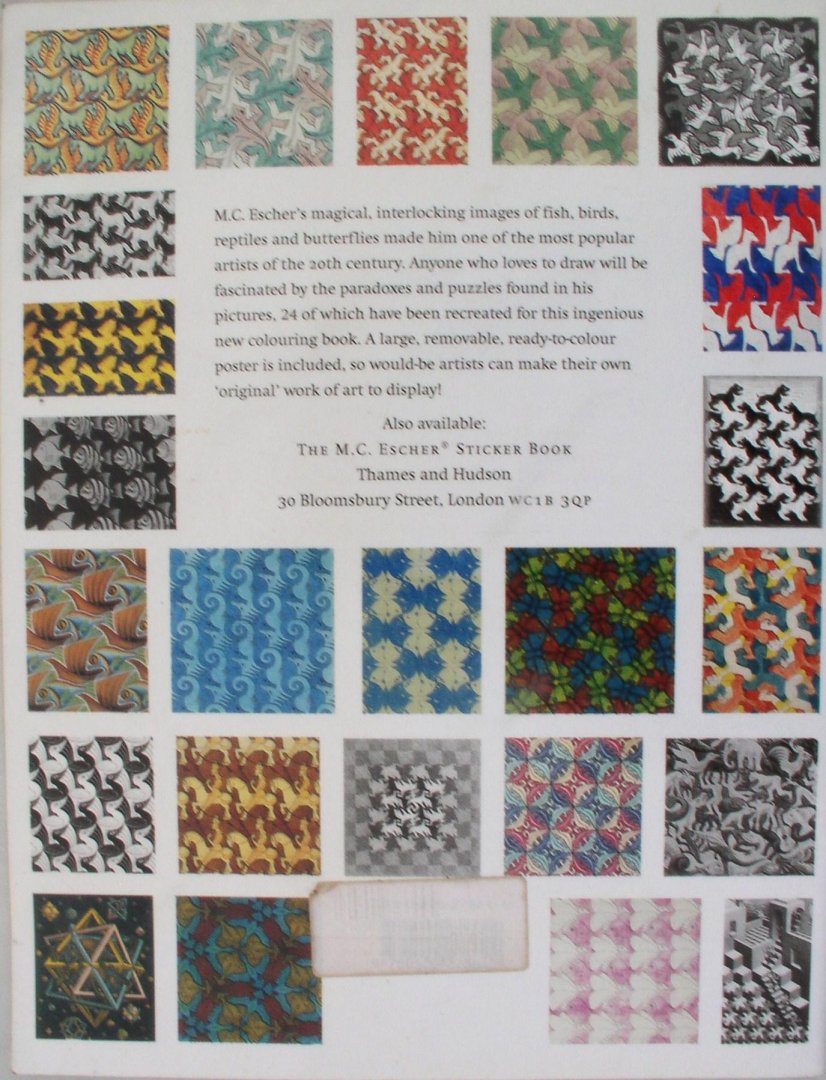 A colouring book utilizing the work of the innovative Dutch graphic designer, M.C. Escher. His symmetrical designs and interlocking images of fish, birds, reptiles and butterflies are widely recognized. This book contains a ready-to-colour poster and pictures. New book ! ( collectors item ) |