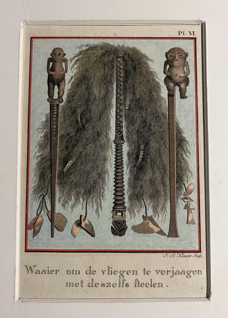 Antique colored etching | Waaier om de vliegen te verjaagen met deszel