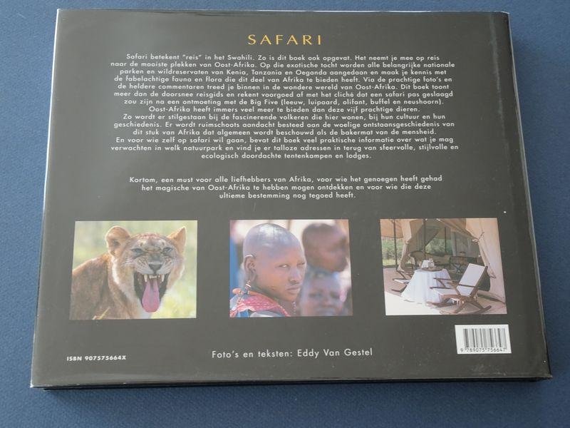 Safari betekent 'reis' in het Swahili. Zo is dit boek ook opgevat. Het neemt u mee op reis naar de mooiste plekken van Oost-Afrika. Op die exotische tocht doen we alle belangrijke Nationale parken en wildreservaten aan van Kenia, Tanzania en Oeganda en maken zo kennis met de fabelachtige fauna en flora die dit deel van Afrika te bieden heeft. Via de prachtige foto?s en de heldere commentaren treed je binnen in de wondere wereld van Oost-Afrika. Dit boek toont meer dan de doorsnee reisgids en rekent voorgoed af met het cliché dat een safari pas geslaagd zou zijn na een ontmoeting met de Big Five (leeuw, luipaard, olifant, buffel en neushoorn). Oost-Afrika heeft immers veel meer te bieden dan deze vijf prachtige dieren.Zo staan we stil bij de fascinerende volkeren die hier wonen, met hun cultuur en hun geschiedenis. Er wordt ruimschoots aandacht besteed aan de woelige ontstaansgeschiedenis van dit stuk van Afrika dat algemeen wordt beschouwd als de bakermat van de mensheid. En voor wie zelf op safari wil gaan, bevat dit boek veel praktische informatie over wat u mag verwachten in welk natuurpark en vindt u er talloze adressen in terug van sfeervolle, stijlvolle en ecologisch doordachte tentenkampen en lodges. Kortom, een must voor alle liefhebbers van Afrika, voor zij die het genoegen hebben gehad het magische van Oost-Afrika te hebben mogen ontdekken en voor zij die deze ultieme bestemming nog tegoed hebben.