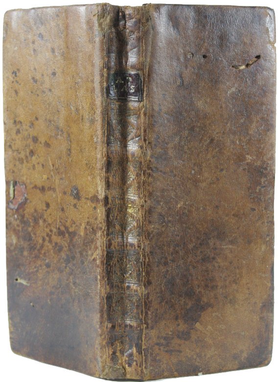 Narrow 8vo (8x20cm, maps ca 20x27cm), contemporary full calf, spine-ends slightly damaged, leather covers have some wormholes. 16 pages (Abregé de la geographie), 16 pages (102 military rules!), 33 folding engraved maps: worldmap, Europe, Africa, Asia, North America, South America, 26 maps of parts of Europe (all but one with borderstrips depicting views, plans and coats of arms) and 1 plate with military architecture. Neat restorations on folds.
