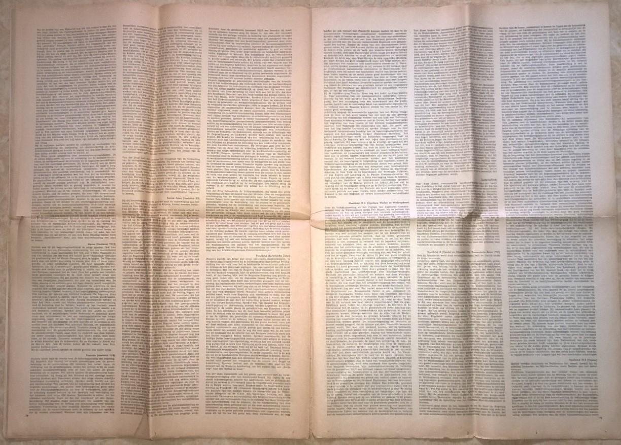 | Bijzonderheden: | Full size krant, 18p. Slijtage (met deels verlies van tekst) op de vouwen van de in vieren gevouwen bewaarde krant; naamstempel voorin. Zeldzaam. 100gr. |