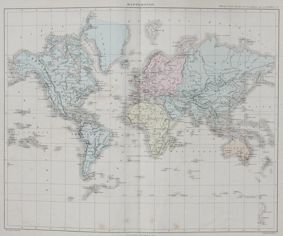 "Physique, Politique, Historique, Commerciale et Agricole" nr.2 "Atlas complet de Geographie Ancienne , Du Moyen Age et Moderne Nouvelle Edition , contenant 86 cartes coloriées a teintes plates".