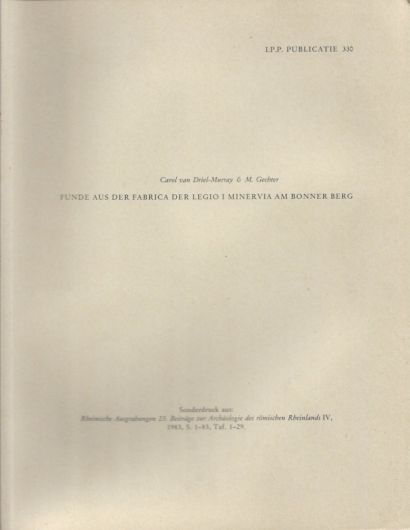 | Bijzonderheden: | 1983. With 11 plates & 46 text-figures. Wrappers. Pp. 211 - 281. (Offprint from 'Rheinische Ausgrabungen 23. Beiträge zur Archäologie des römischen Rheinlands IV, 1983). |