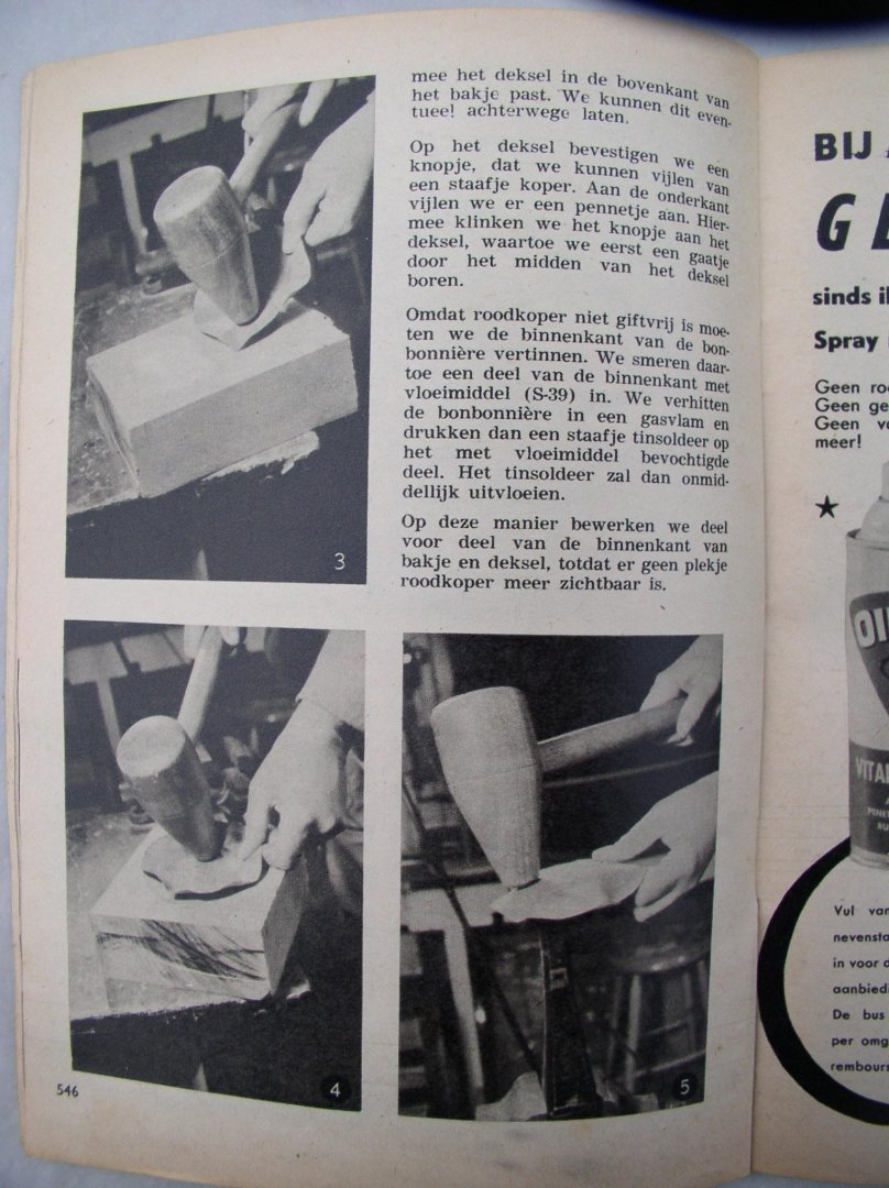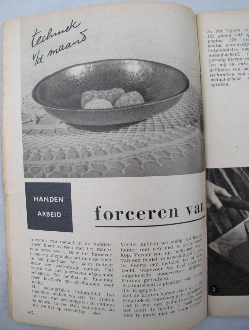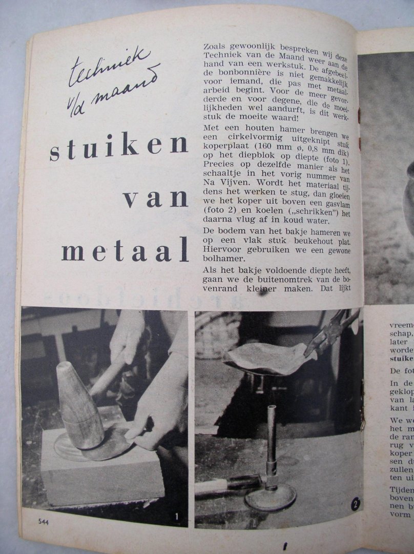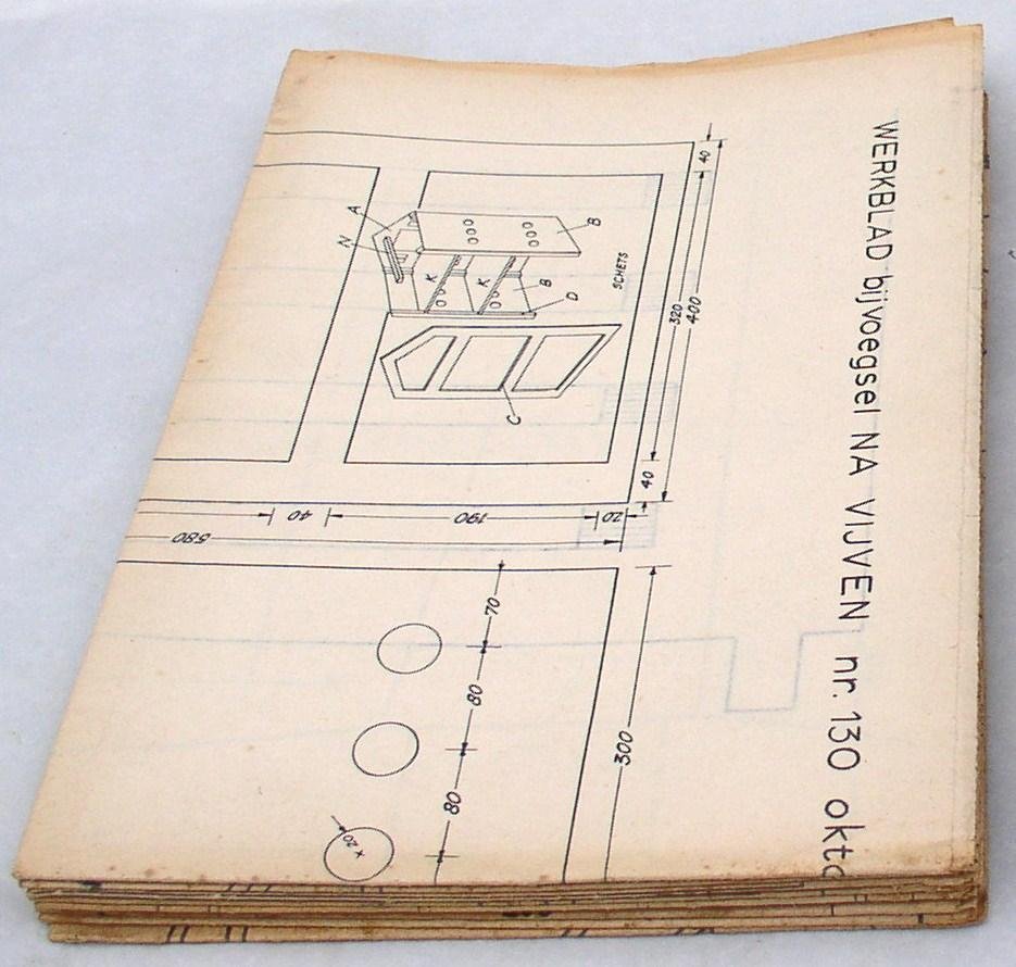 maandblad met uitgebreide beschrijvingen en werktekeningen in elk nr. en op werkbladen voor huis- en tuinobjecten, design, mode-accessoires, speelgoed, hobby ( o.a. gitaar bouwen ) , fotografie en modelbouw, Met technische, constructieve en kunstzinnige technieken. I.g.s. met lichte ouderdomssporen m.n. betr. vergeelde randen van de werkbladen. nr. 121 schade omslagblad en bovenaan 1e pag., klein scheurtje,nr. 123 mm.-stukje uit bovenrand van achterblad nr. 127 scheurtje op vouw omslag en achterblad bovenkantje, De werkbladen van nr. 125 127 131 zijn er niet bij.