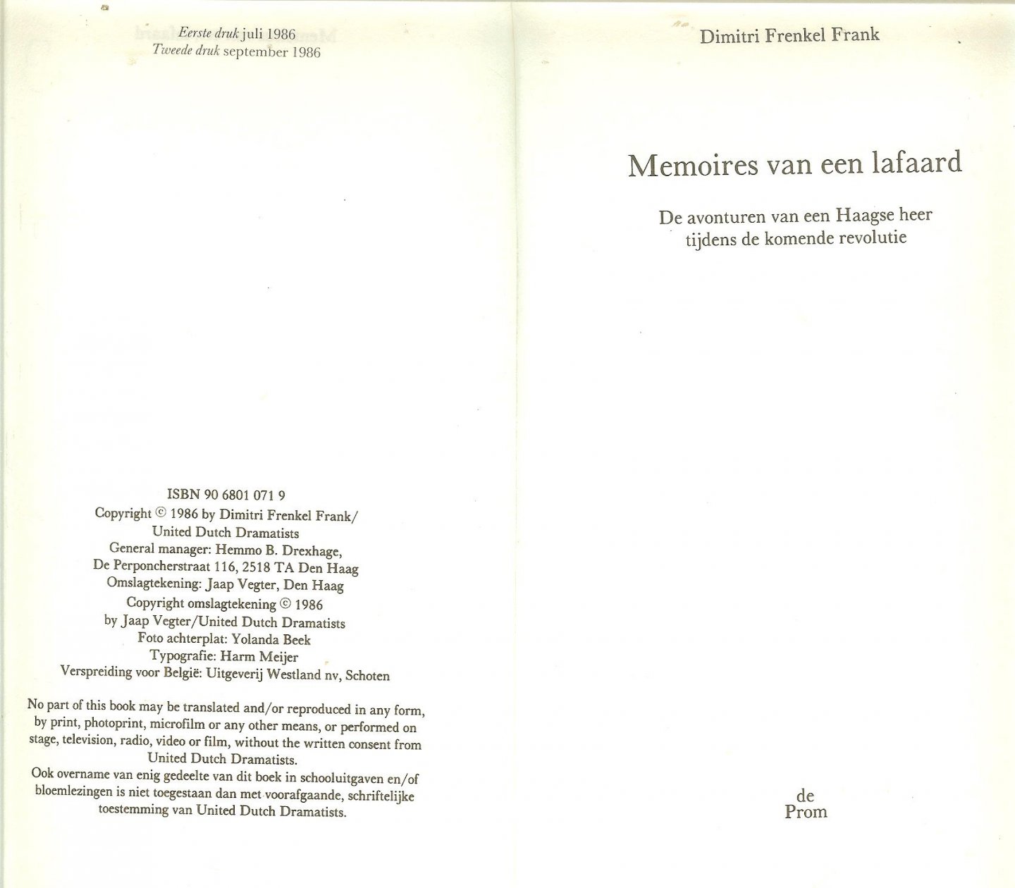 Frenkel Frank, Dimitri Omslagtekening Jaap Vegter en foto achterplaat