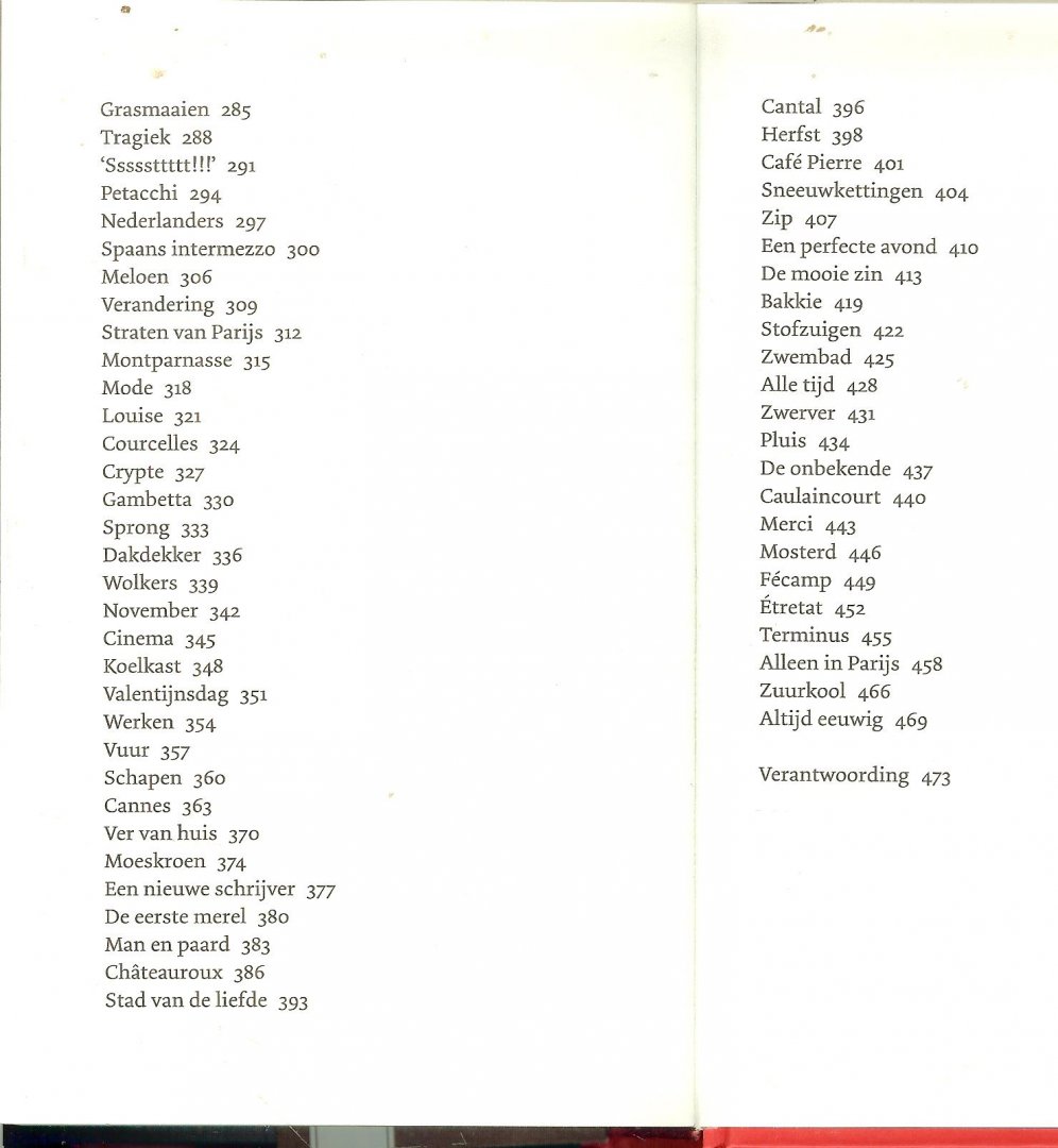 Zoals de ondertitel al zegt een verzamelbundel met alle verhalen van Martin Bril die over Frankrijk gaan, eerder verschenen in de Volkskrant en eerder gebundeld in De Franse slag, Tout va bien en C'est la vie, maar ook een aantal niet eerder gepubliceerde verhalen. Bril schetst op luchtige en aangename wijze het leven van de Fransen, hun gewoontes en het reilen en zeilen van zijn gezin tussen diezelfde Fransen. Het openingsverhaal gaat over het aanschaffen van een tweede huis met alles wat daarbij komt kijken, in 'Visionair' wordt een burgemeester gepresenteerd die in zijn kleine dorp het eerste internetcafe van de wijde omgeving wil openen, in 'Moeskroen' gaat het over een chauffeurscafe op de grens van Belgie en Frankrijk waar twee barvrouwen zich moederlijk ontfermen over de eenzame chauffeurs. Het zijn geen kritische teksten, maar juist die van een francofiele buitenstaander die het Frankrijk van de laatste dertig jaar liefdevol beschrijft. Een lezer die op dezelfde manier naar Frankrijk kijkt, zal zeker genieten van de verhalen van Bril. Normale druk.