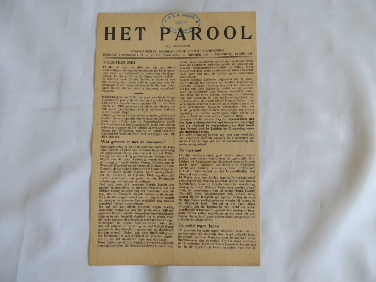 | Titel: | Het Parool - onafhankelijk dagblad vrij onverveerd. mei 1945 vijfde jaargang, Het Parool - onafhankelijk dagblad vrij onverveerd 1945 vijfde jaargang, no. 102, 106,113, 117, 118, 122125, 131, 134, 139, 151, 153, 157, 159, 160, 165. |