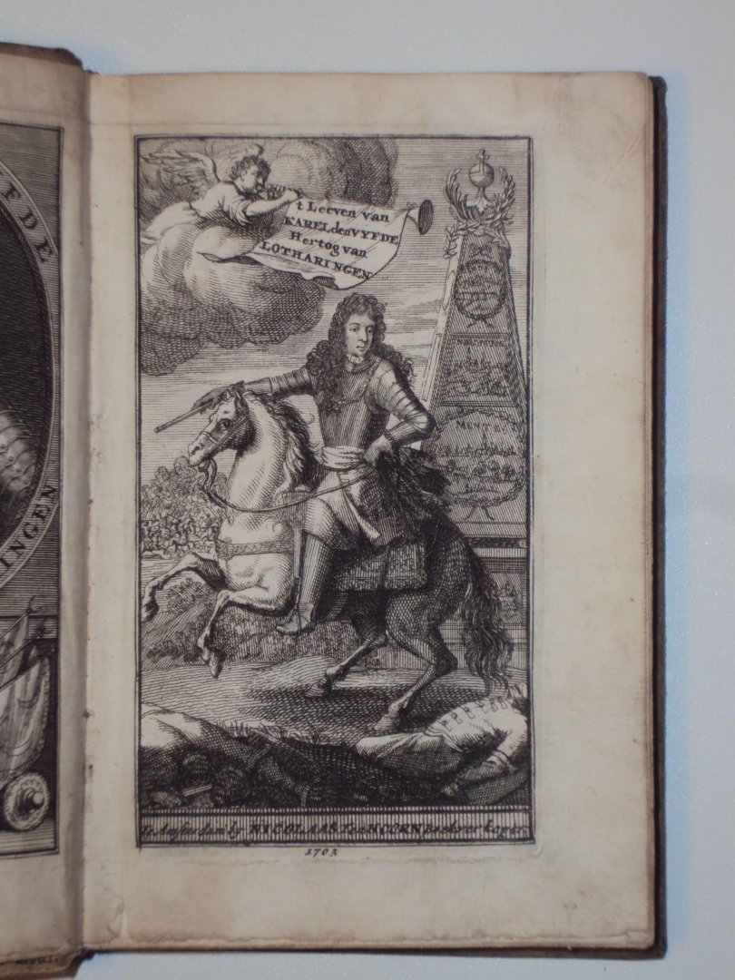 | Meer info: | het leven, wakkere bedryven en dappere oorlogsdaden van Karel den vyfde, hertog van Lotharingen etc. In zyn levenalgemein gezaghebber der keyzerlyke krygsmachten in Hongaryen en Duytsland - Amsterdam, Jan ten Hoorn, 1703 - 384 pp - perkament vellum - 16 x 10,5 cm |