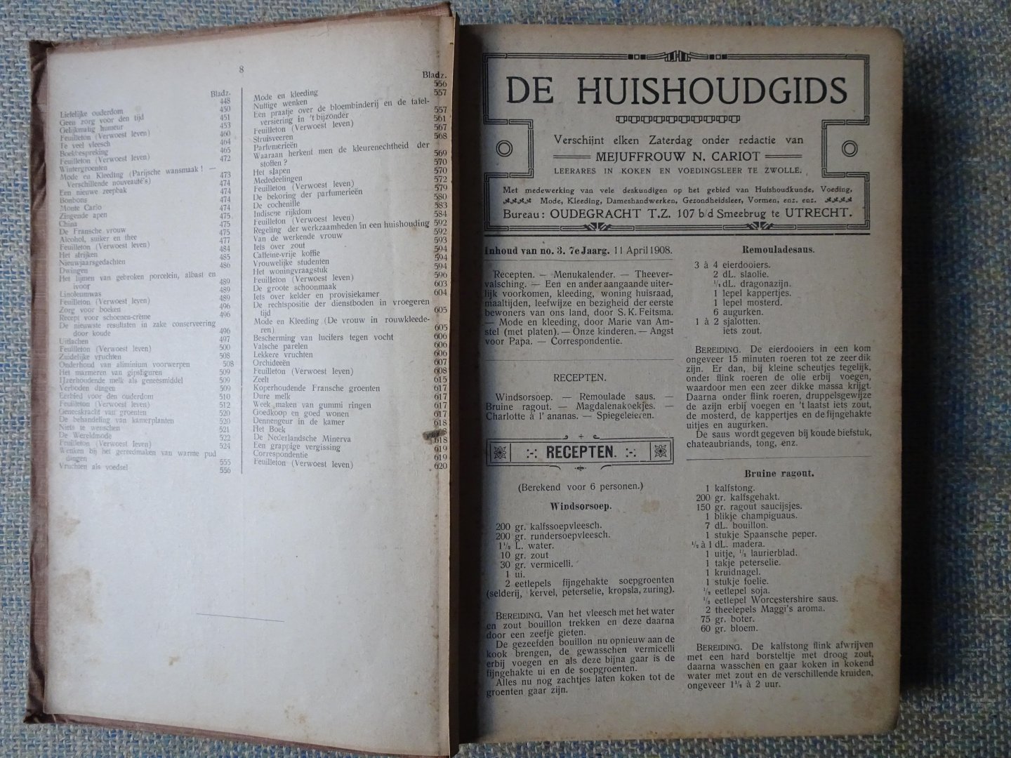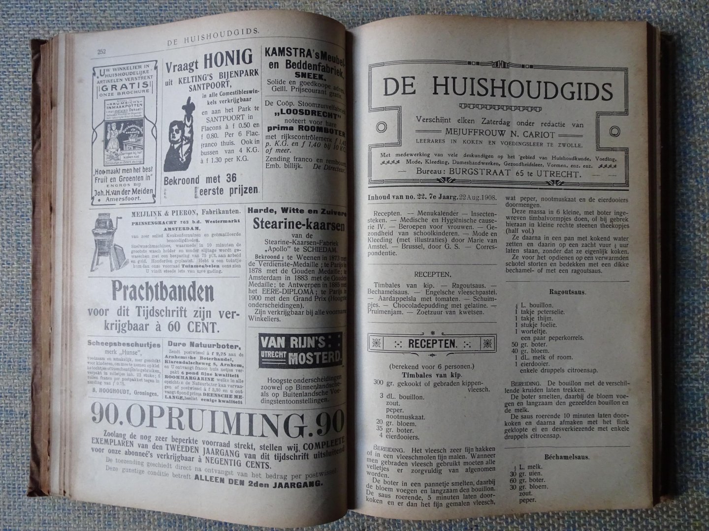 | Titel: | DE HUISHOUDGIDS 7e jrg nr 3, 11/4/1908 t/m no 52, 20/4/1909 |