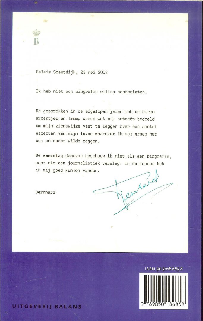 Tussen januari 2001 en april 2004 voerden Pieter Broertjes en Jan Tromp negen lange gesprekken met prins Bernhard op paleis Soestdijk. Niemand was hiervan op de hoogte. De afspraak was dat zij pas zouden publiceren na het overlijden van de prins. De prins heeft de teksten nauwgezet gelezen, hij heeft hier en daar wijzigingen aangebracht, maar in grote lijnen heeft hij de weergave van de ontmoetingen gevolgd en akkoord bevonden. |