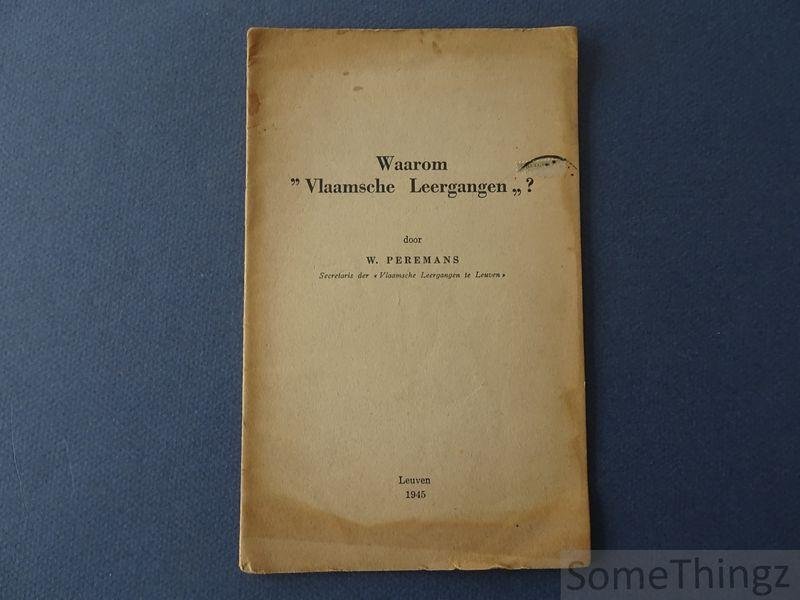 W. Peremans. - Waarom 'Vlaamsche Leergangen'?