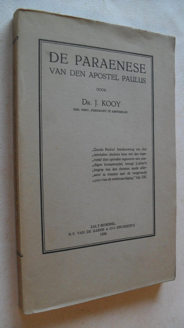 Kooy Dr. J. - De Paraenese van den Apostel Paulus