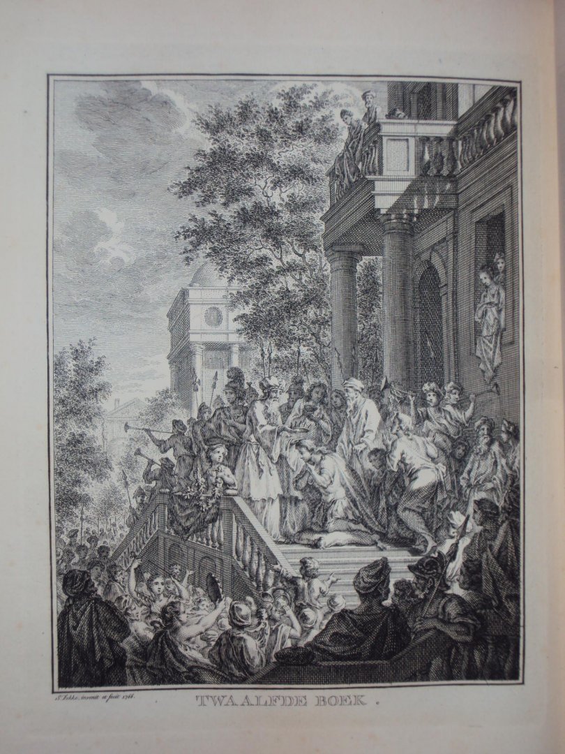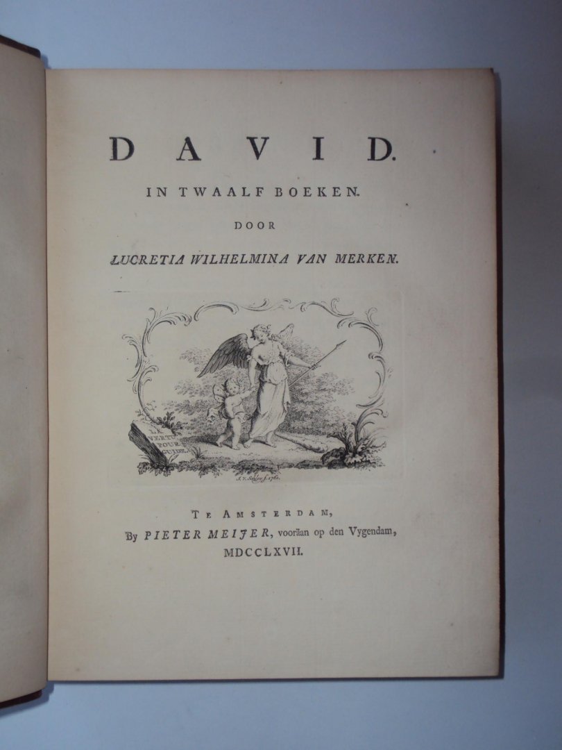 Lucretia Wilhelmina van Merken - David. In twaalf boeken - Amsterdam, Pieter Meijer, 1767 - 395 pp - leer leather calf - 25 x 19, 5 cm compleet met frontispiece en 12 gravures bij de 12 boeken. |
